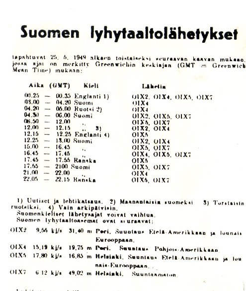 schedule on the right. 1948: Inauguration of the high powered transmitter in Pori Finland