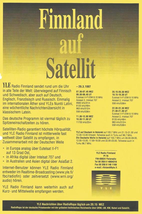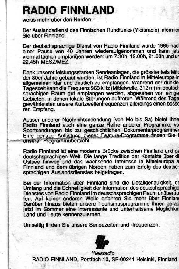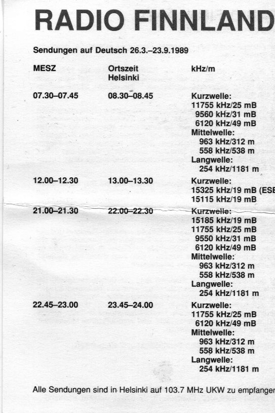 NDR:n ja RIAS:in välissä. Ja tietenkin Suomi oli (d) saksankielisille eurooppalaisille ihan todellinen